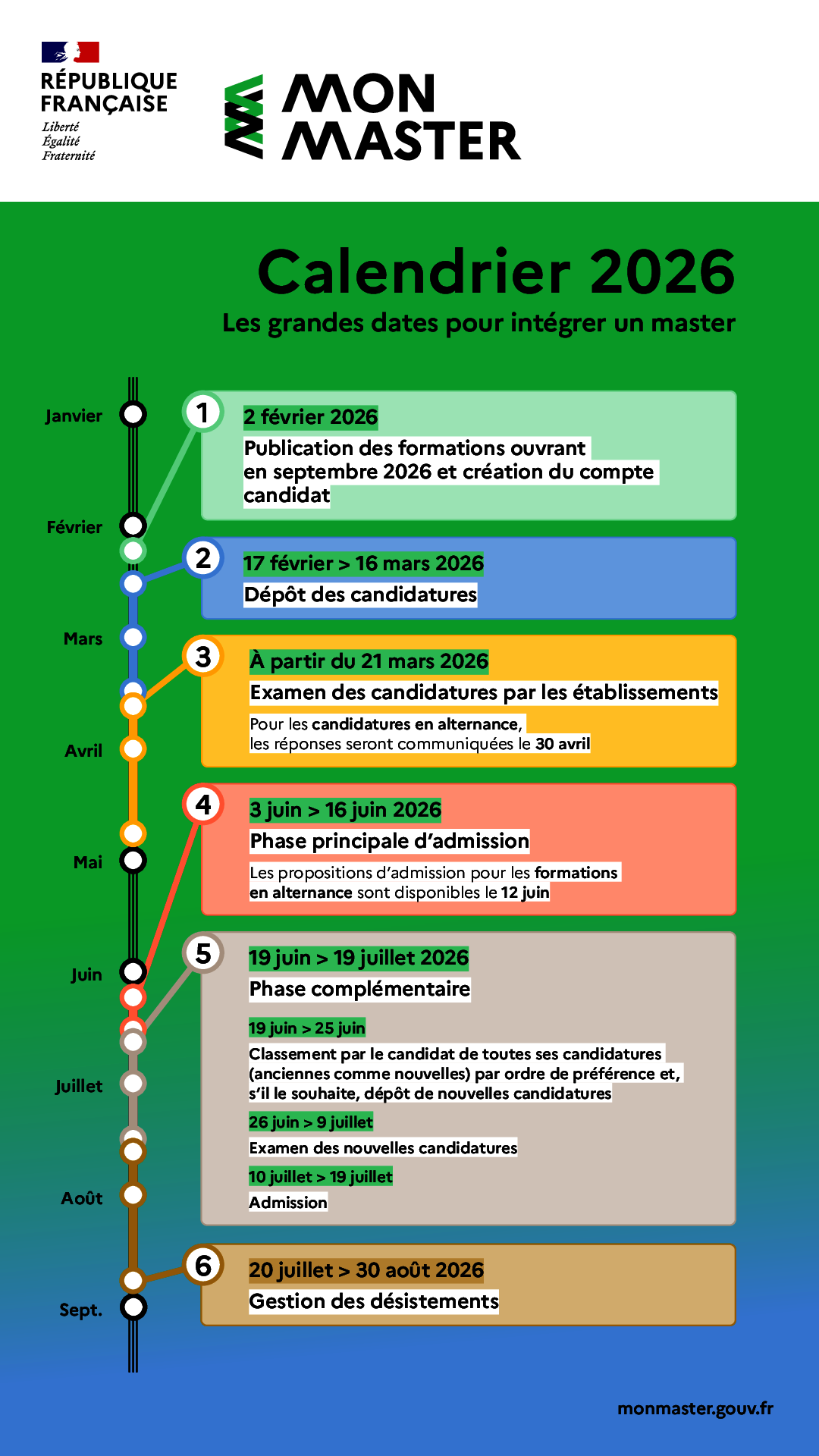 Le site monmaster.gouv.fr est le guichet unique pour candidater à plus de 8 000 parcours de masters dans plus de 3 500 formations sur tout le territoire français. L’espace candidature de la plateforme est désormais ouvert. Il permet aux candidats à l’entrée en première année de master de formuler leurs vœux jusqu’au 24 mars inclus.